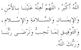 Allahu `Akbar, Allahumma `ahillahu `alayna bil`amni wal`eemaani,